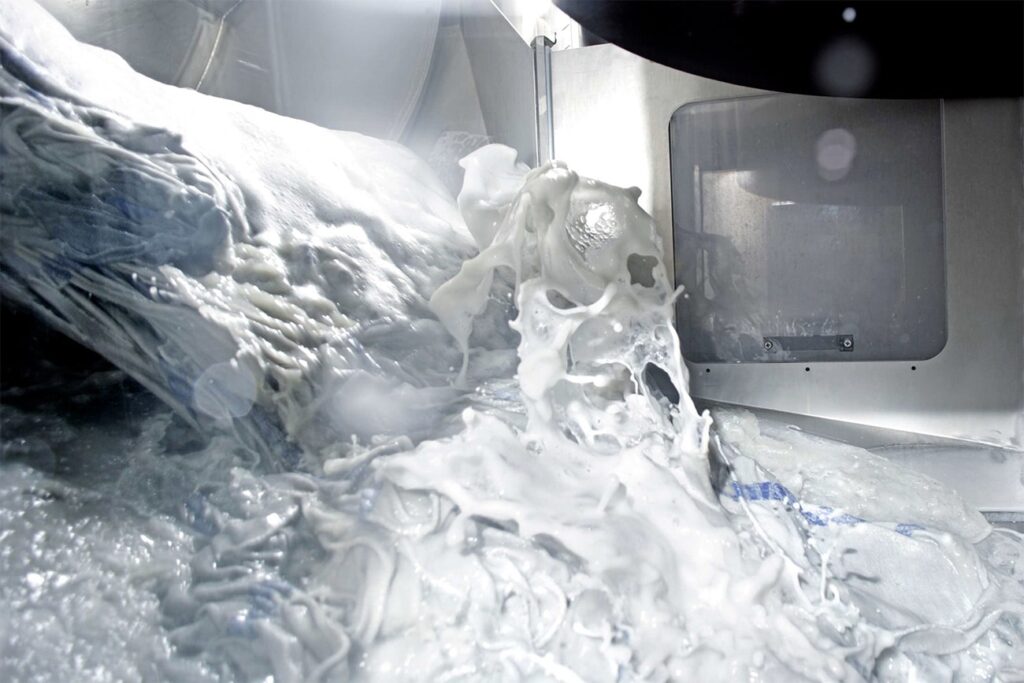 Om het milieu niet te vervuilen heeft Mewa een eigen wasproces ontwikkeld met speciale doseer- en controlesystemen.